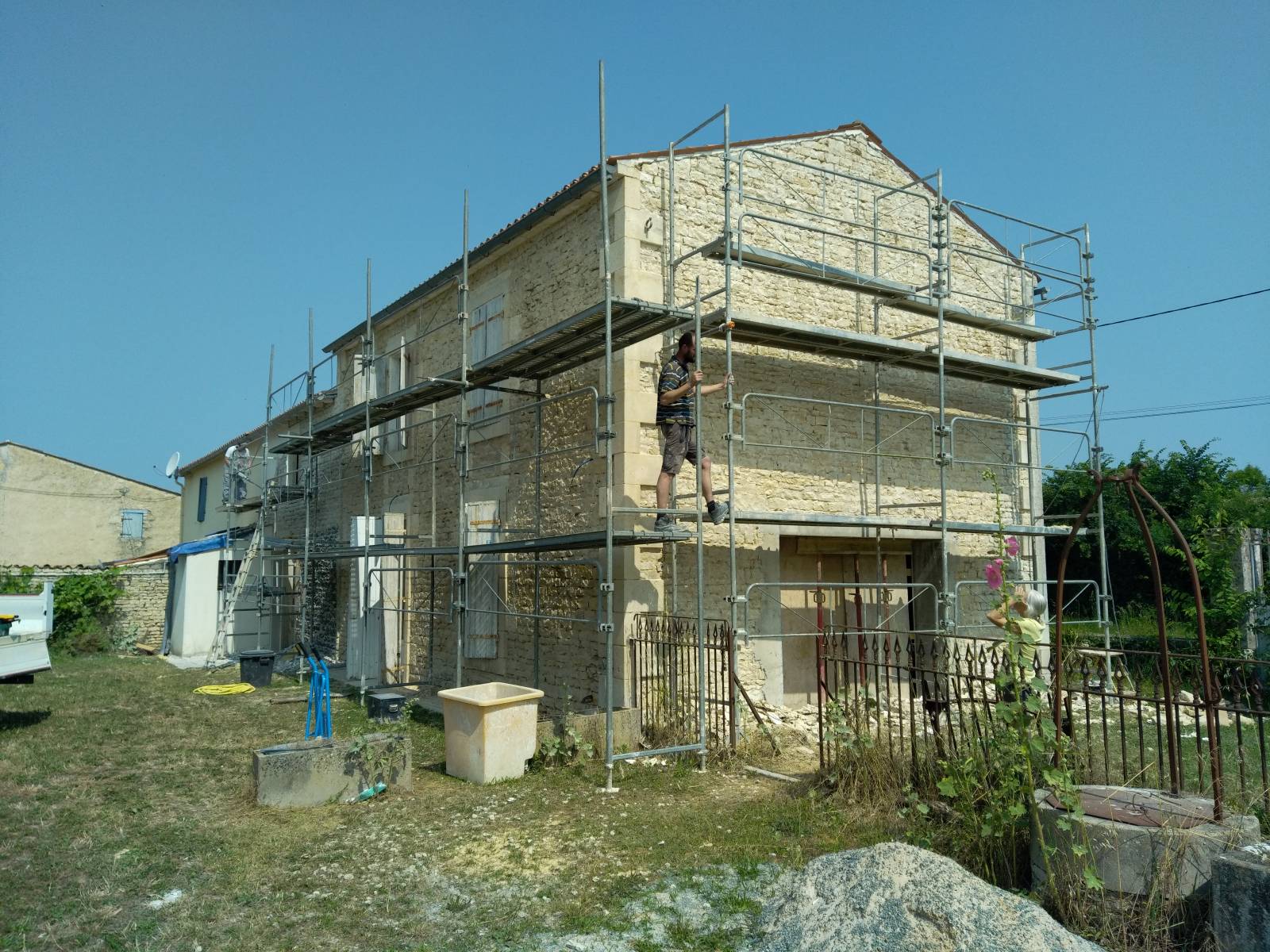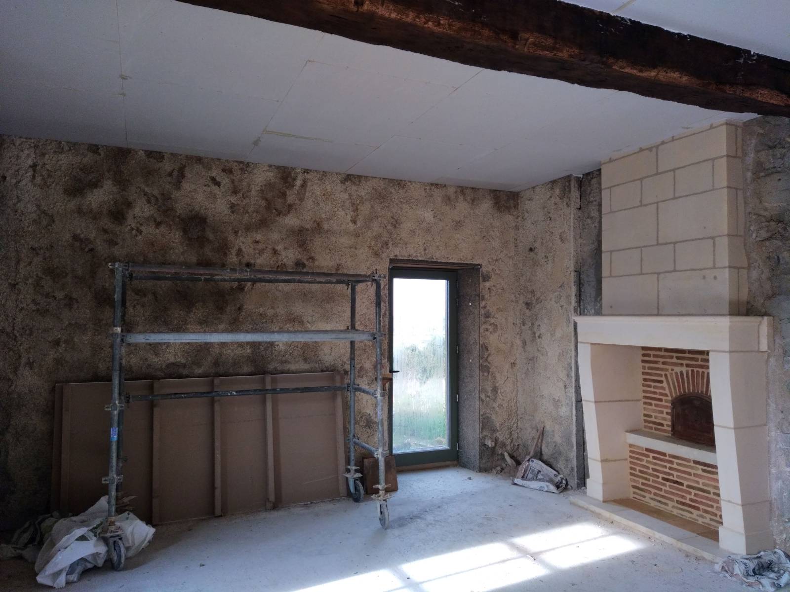Création d'une ouverture en pignon et piquetage des vieux enduits ciment de cette bâtisse en pierre à St Sauveur d'Aunis