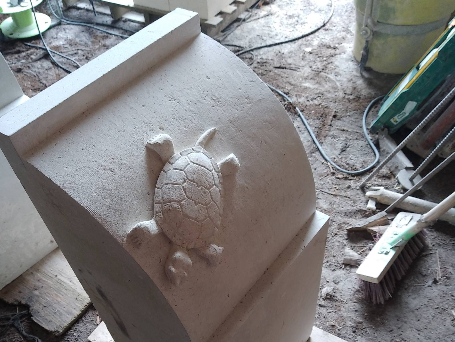 Taille de pierre réalisée sur place par les compagnons à La Gripperie-St Symphorien
